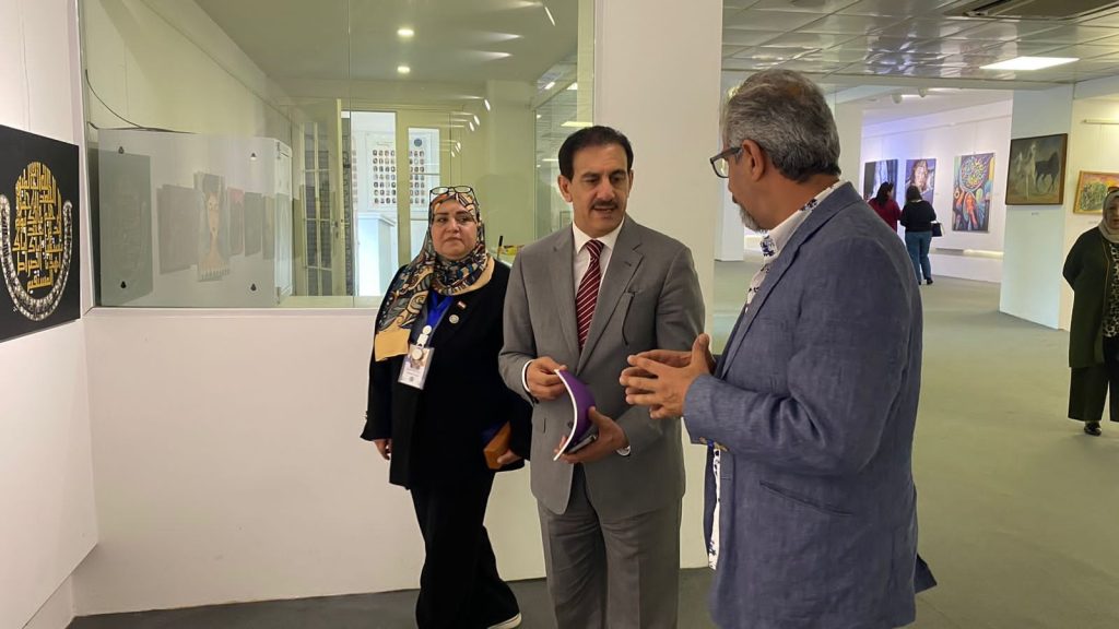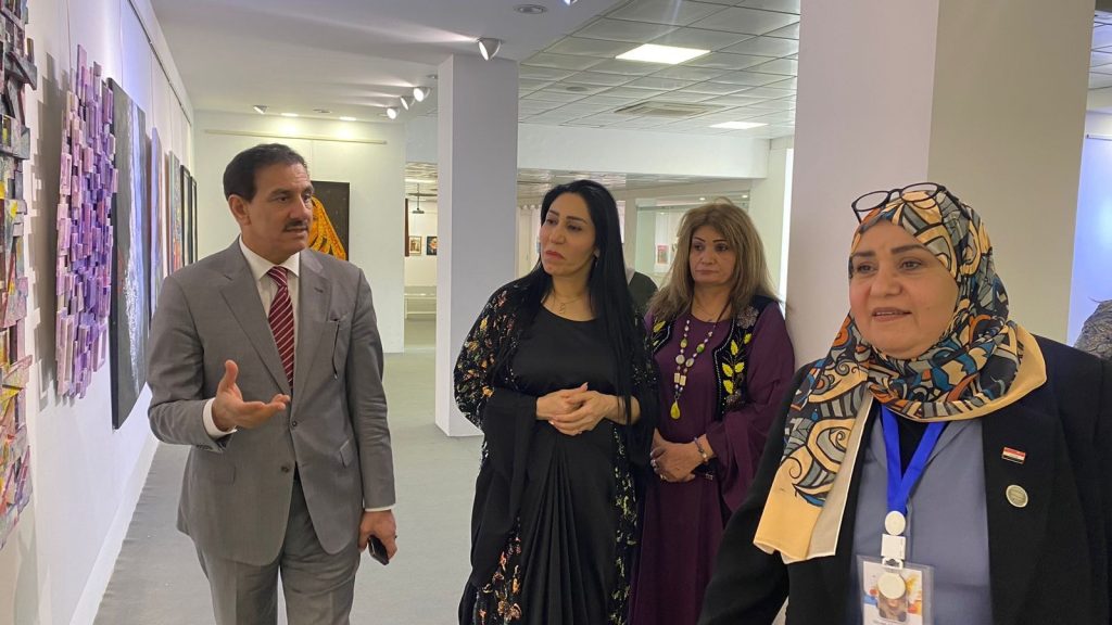 You are currently viewing During his participation in the activities of the Sulaymaniyah International Forum<br>The Undersecretary for Cultural Affairs opens a plastic arts exhibition for the Iraqi Women Plastic Arts Organization